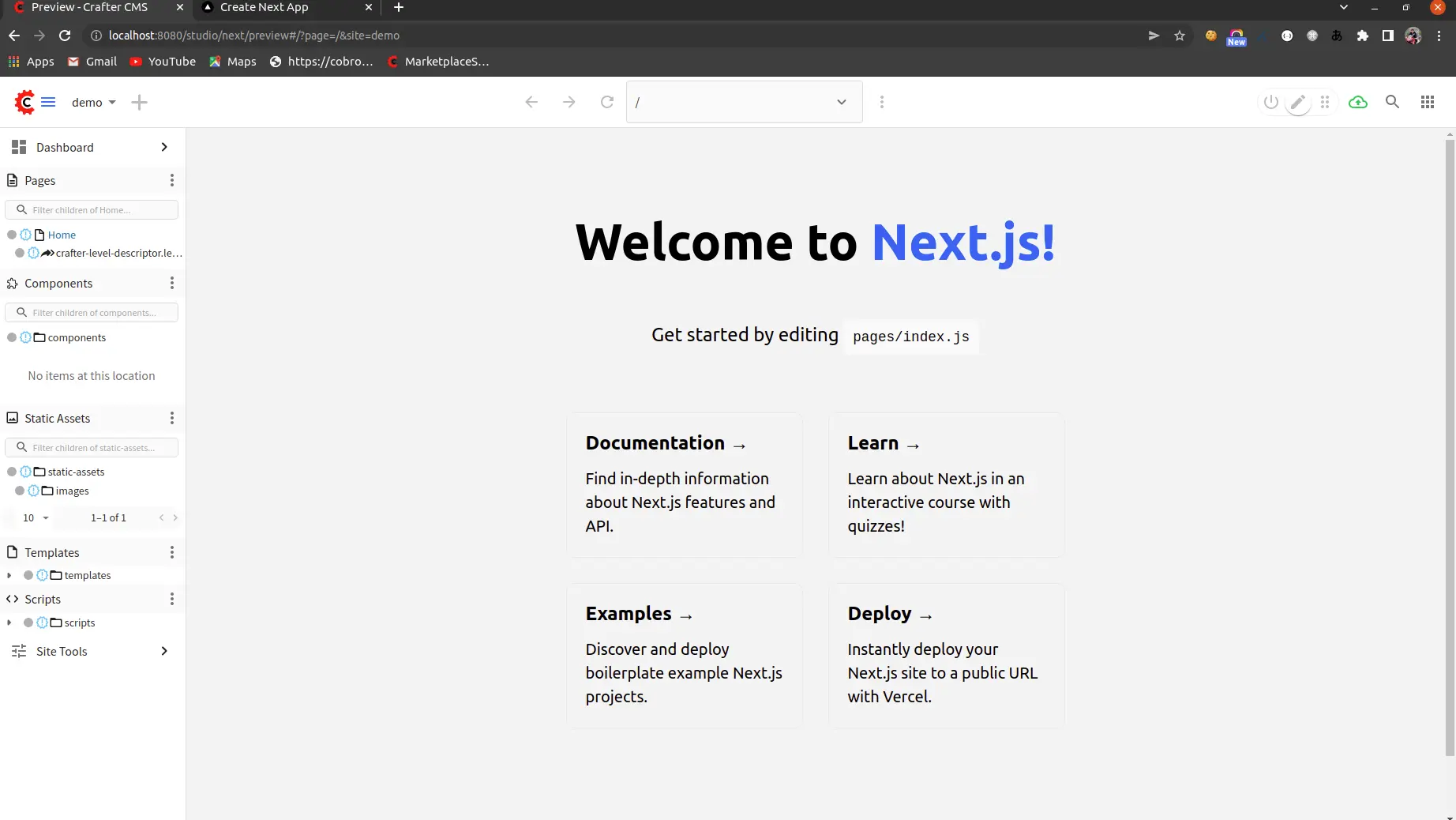 Let continue this session on how we can create a CrafterCMS site with NextJS integration from scratch.