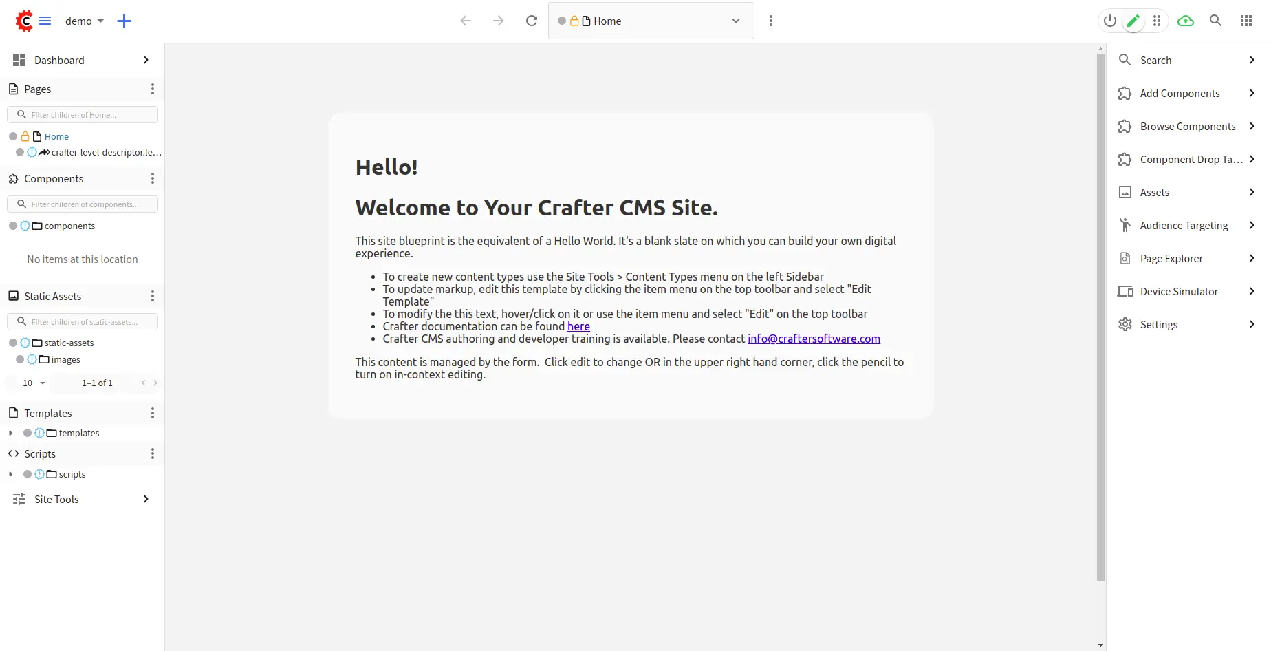 index.js: This is the root route for home. Take a look on this on how to use In-Context Editing with Crafter Studio: