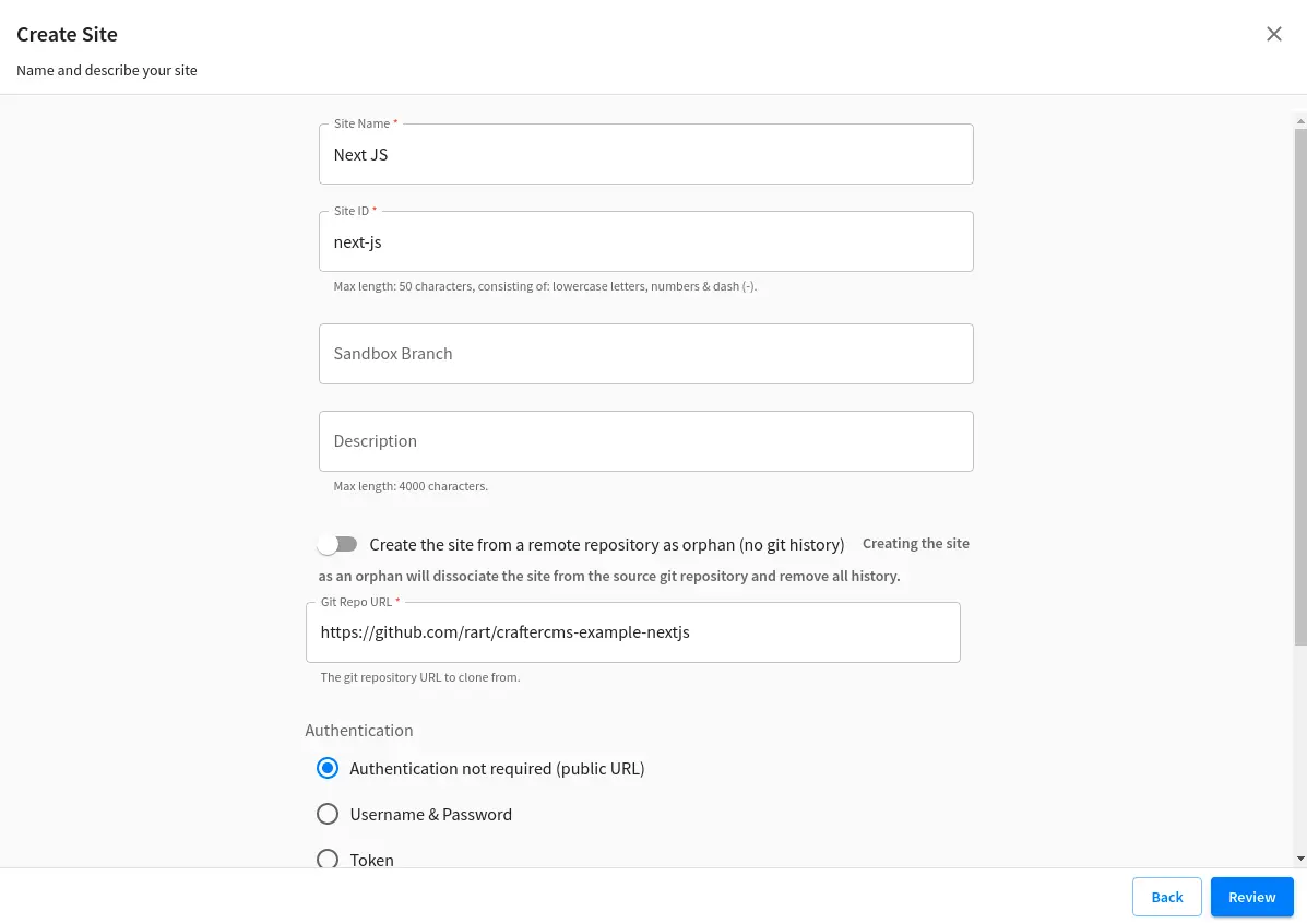 - Git Repo URL: https://github.com/rart/craftercms-example-nextjs