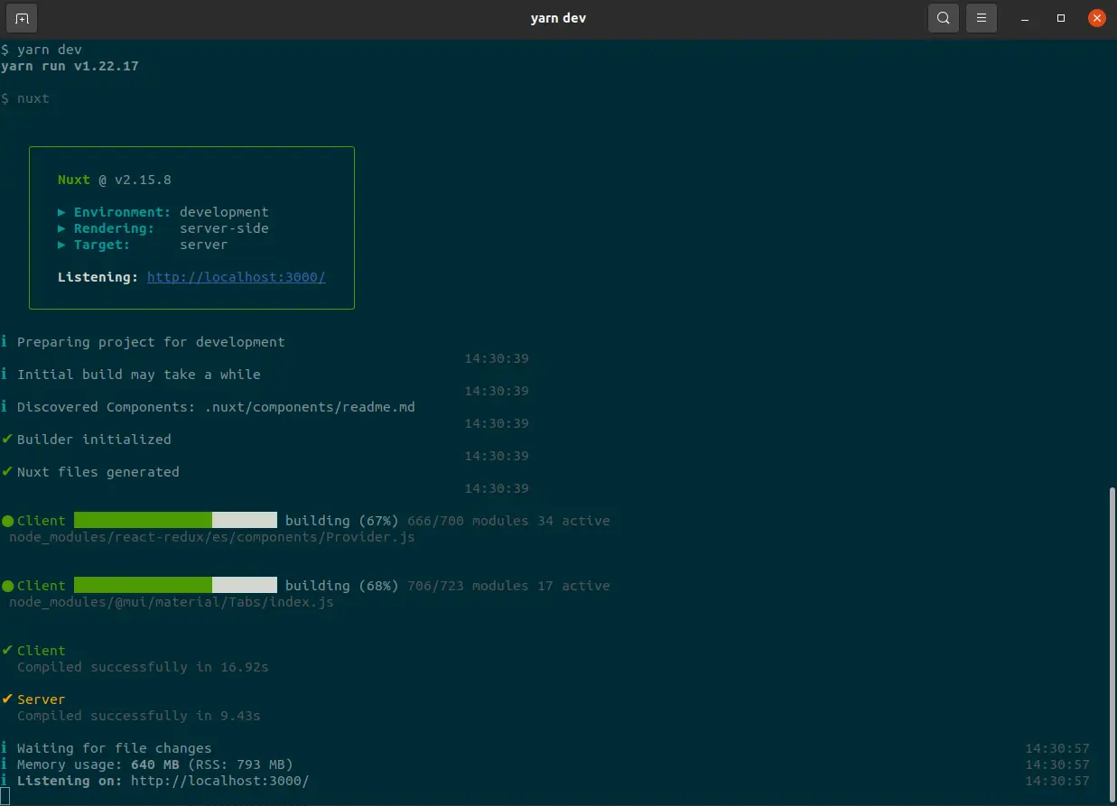 When completed, go to `app` directory then start NuxtJS in port 3000: