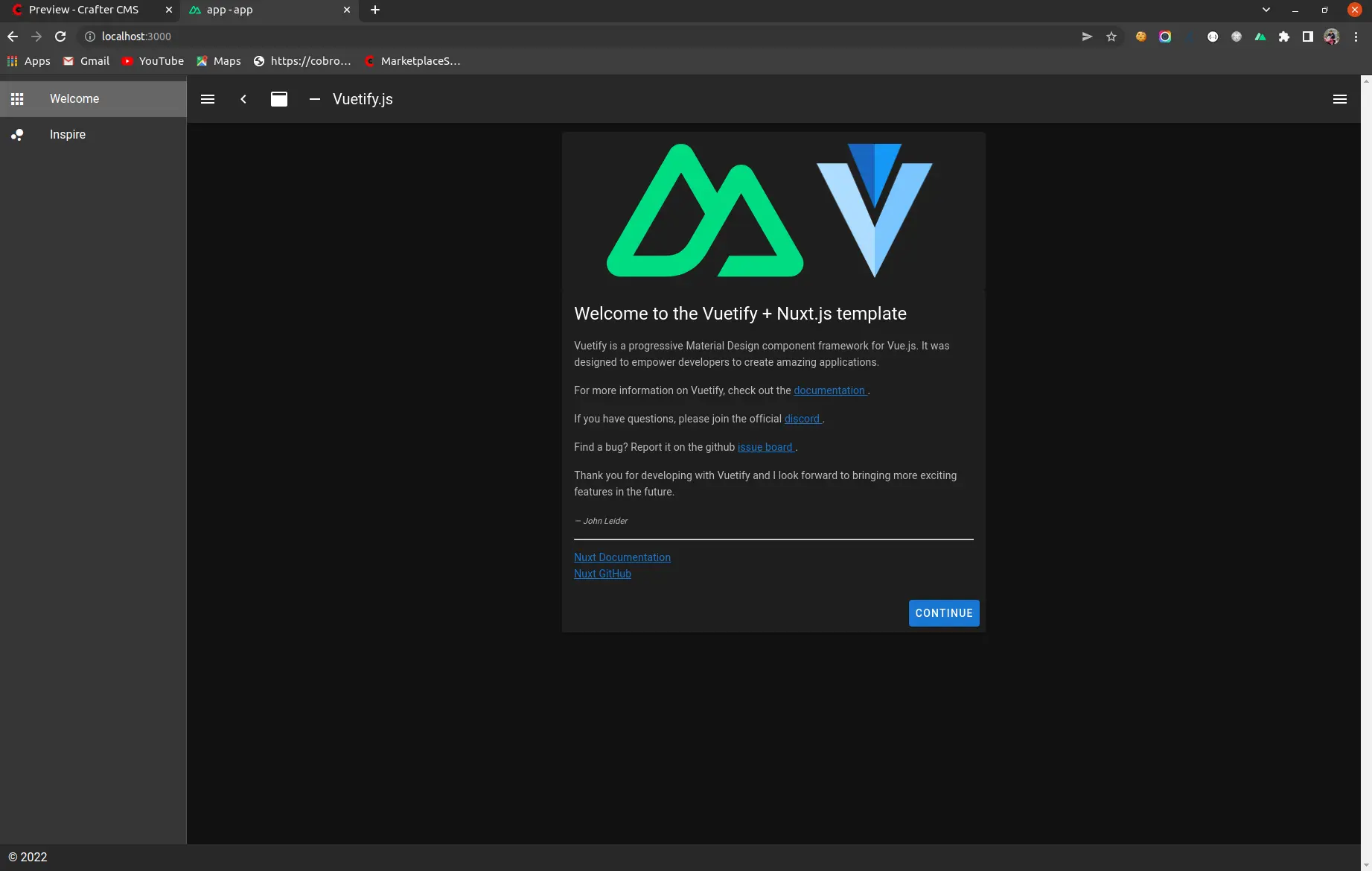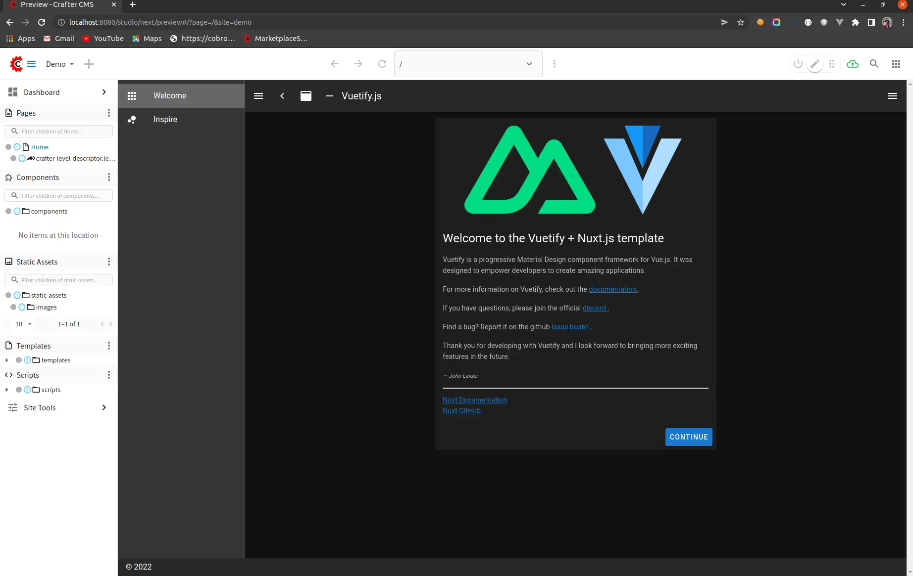 CrafterCMS Sites with NuxtJS Integration
