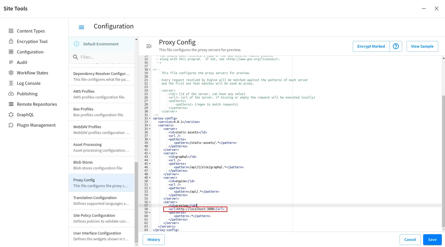 Update proxy configuration: