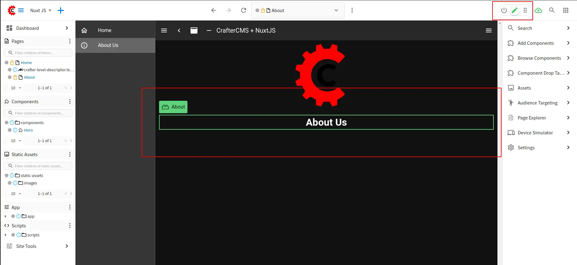 Let’s take a closer look at how we use Experience Builder feature of CrafterCMS with our NuxtJS application.