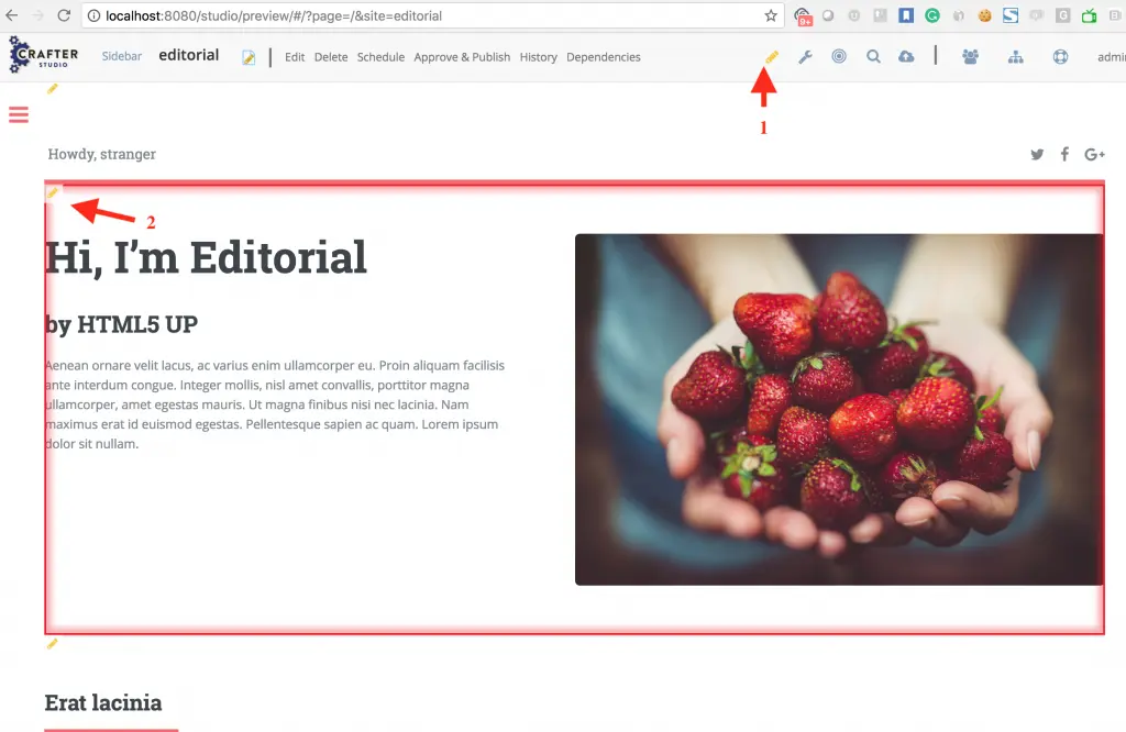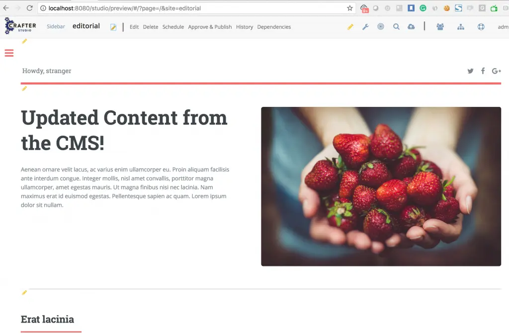 Now that our code is complete our content authors can update the content at any time via the CMS and we don’t need to rebuild or redeploy the application. Let’s use Crafter Studio to update the content for our app.