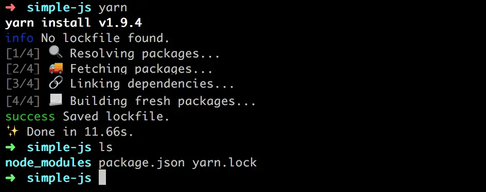 - In our example, I will use Yarn to manage my package.json file and to assist me in building my application.