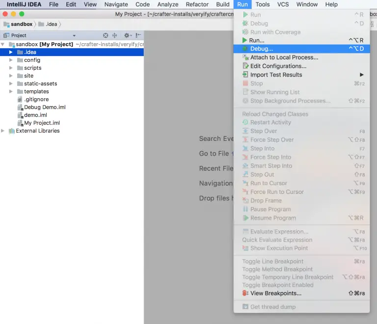 You are going to use your IDE to update and debug your code and templates. You’ll want a local instance of CrafterCMS running so you to execute the code and attach your debugger to.
