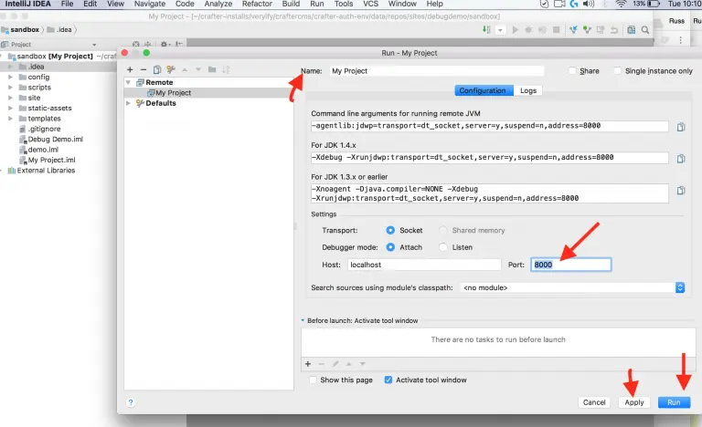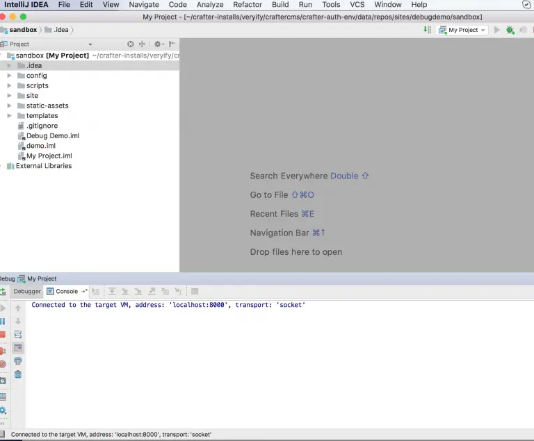 - Click “Run” to attach to the JVM running CrafterCMS