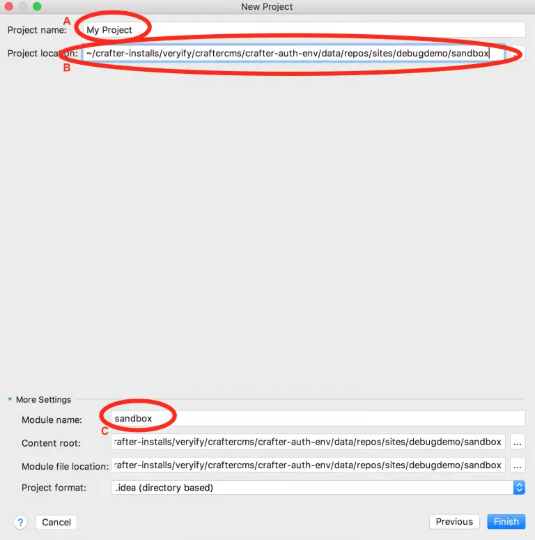 - Change the module name from Sandbox to your project name