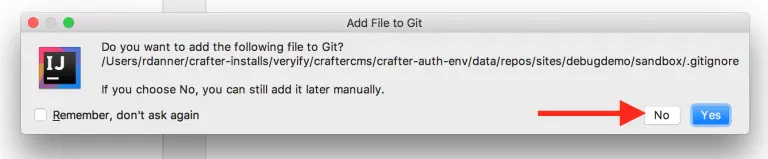 - Do not add this file to Git when prompted.
